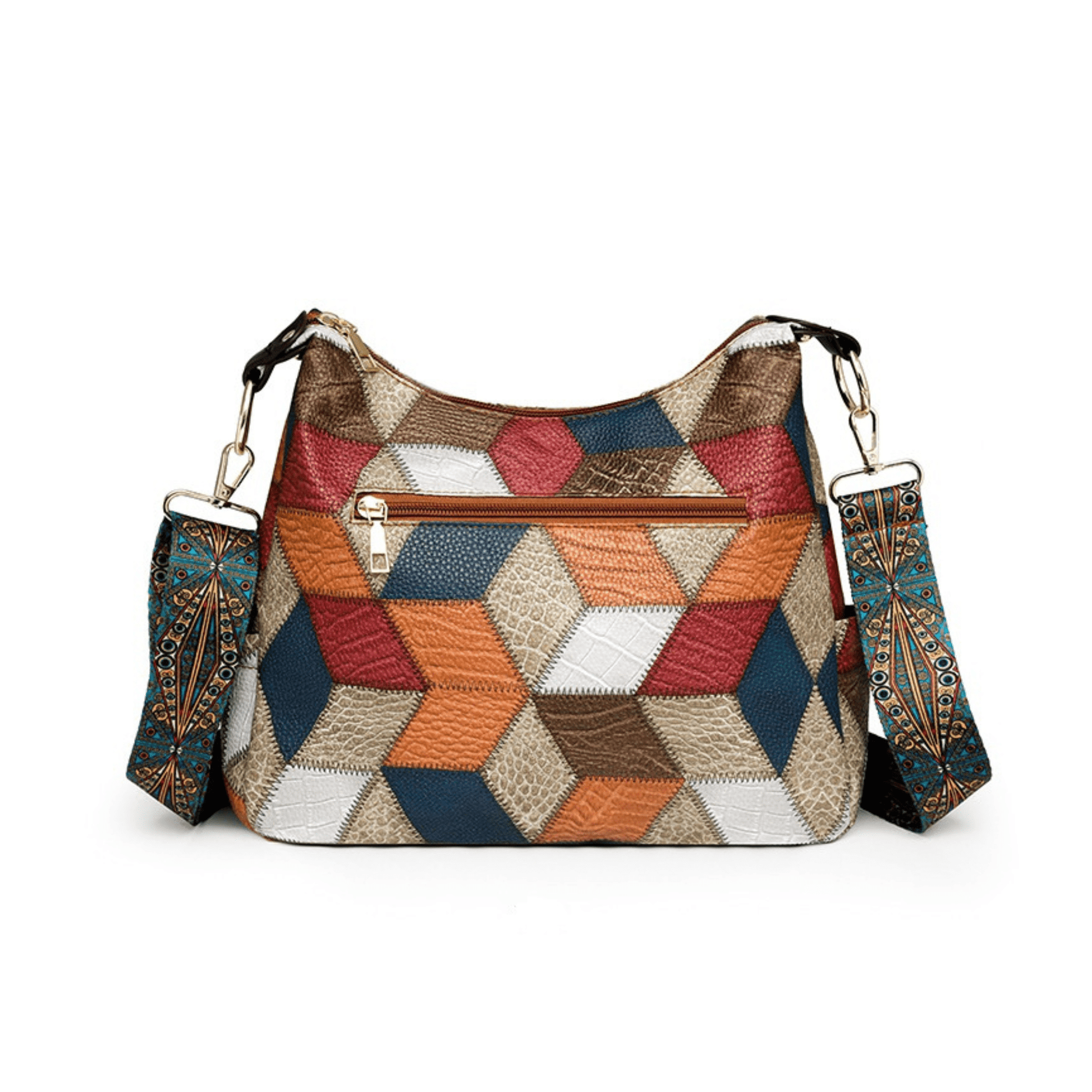 - Vibrant Design: Featuring a stunning mosaic pattern in a blend of warm and cool tones, the ChicMosaic 2.0 Handbag adds a pop of color to any outfit.